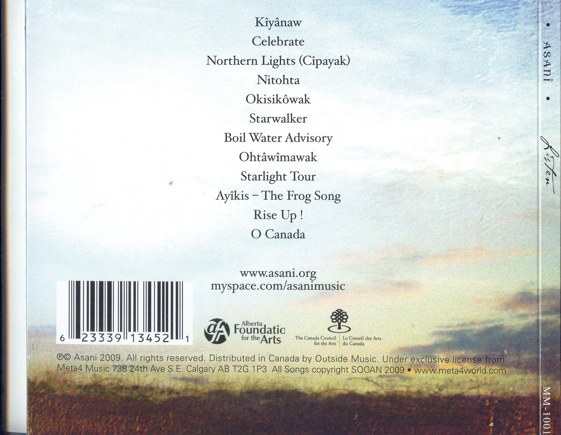 Best of all, Asani makes Aboriginal music and culture accessible to people of all backgrounds thanks to their gorgeous vocal arrangements and song-writing skills that are first rate by any standard. Listen is indeed an album everyone will want to listen to again and again.