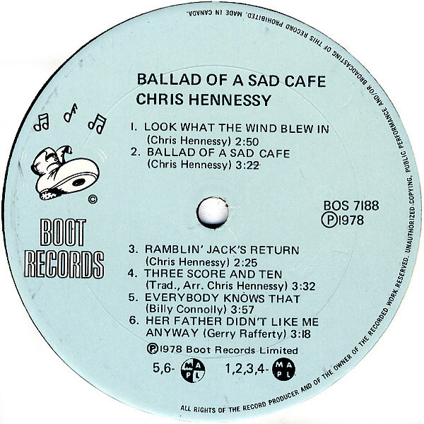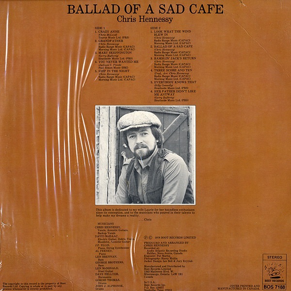 Ballad Of A Sad Café was written and recorded by Chris Hennessy of Torbay, NL in 1978