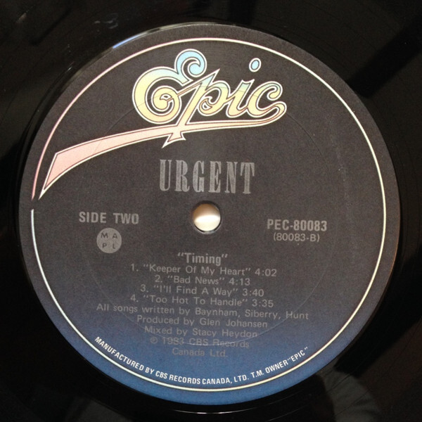 Sharing the name of a band from New York, the Canadian band Urgent was from Toronto, Ontario, Canada and formed when drummer Kim Hunt left the band Zon in 1982 and connected with bassist Doug Baynham and guitarist Wayne Siberry. With Baynham also handling the majority of the vocal duties, they wrote and practiced daily, practically living in the studio for three months. Keyboardist John McGoldrick was added for touring purposes and they quickly established themselves as one of the hotter new heavy acts on the Ontario circuit, and it wasn't long before they were playing shows across the country – catching the attention of Epic Records execs along the way. They submitted a three-song demo tape to Epic Records and signed a deal in the spring of 1983.