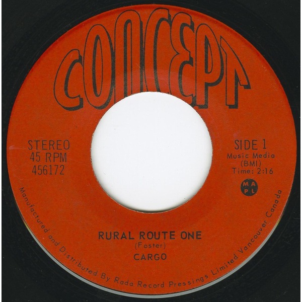 "Both the Cargo and Fear singles were released while I was in Vancouver in 1971 or 1972. As you can see, there were 2 versions of the Concept label. The red labels are from my manufacturing and distributing deal with Rada Records. They had a small pressing plant, located in the eastern suburbs, which was eventually sold to gospel label Praise Records. The brown and beige labels are from my deal with Imperial Records, a California company that owned a pressing plant in Vancouver."