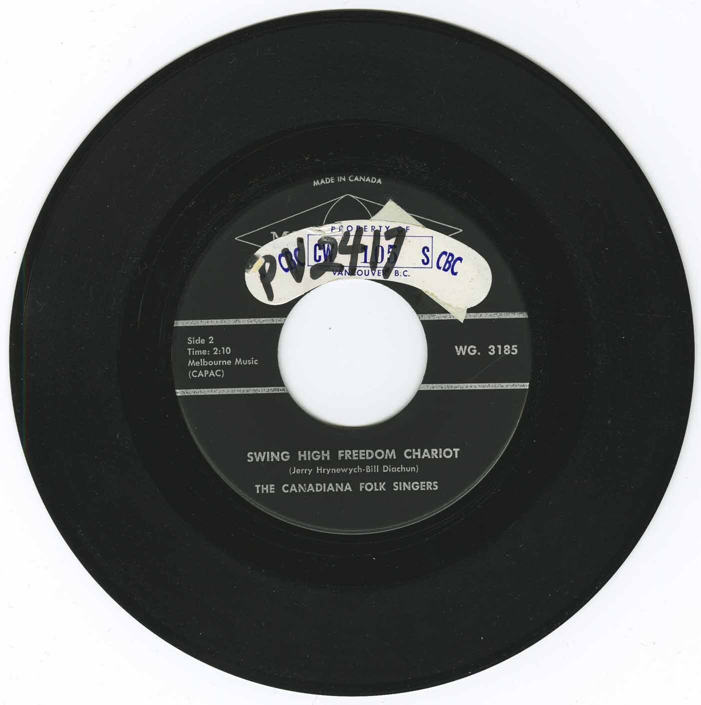 Canadiana Folksingers - Singin' in Orillia b/w Swing High Freedom Chariot
