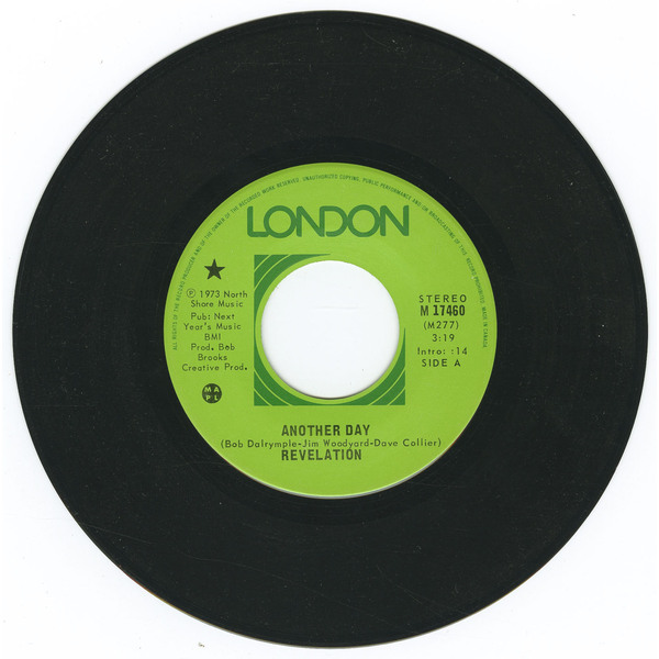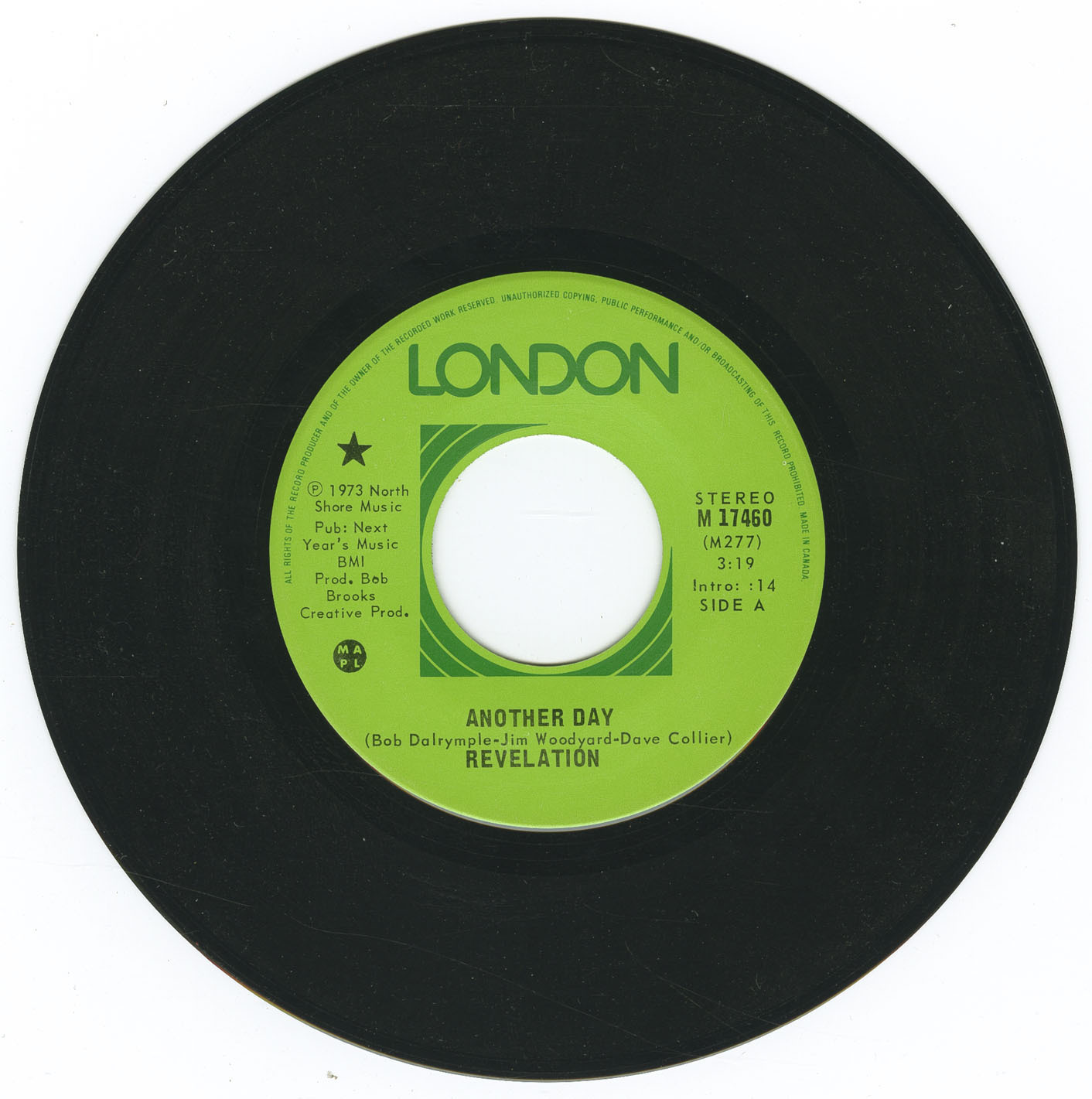 Revelation was a Vancouver-based soft rock band active in the early 1970s, blending melodic pop with gospel influences and reflective songwriting. Their only commercial release, “Another Day” b/w “Satisfied Mind”, was issued in 1973 on London Records (catalog number M‑17460), and distributed nationally.
