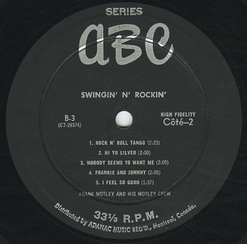 Motley’s first Canadian release came in 1956 on the Quality label: the scorching R&B 78 “Rock and Roll Gotta Beat” b/w “New Hound Dog”, issued as Frank 'Dual Trumpet' Motley and His Crew. A powerful mix of jump-blues and early rock, it marked one of the earliest Canadian R&B recordings and placed Motley at the leading edge of the country’s nascent Black music scene.