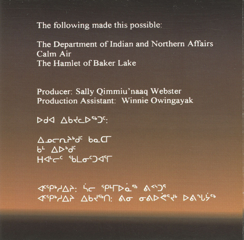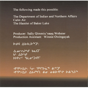 “I am so grateful to you for making these recordings from Baker Lake available. These songs, because of you, are now going to become part of the children's education. Their language and culture is vital to their identity, and there is so much erosion of it from competing distractions. Most of the children speak English and don't know Inuktitut. These songs will connect the younger generations, and future generations, to their roots. These songs will reconnect the younger generations to their culture and their language. Thank you for making that possible. There are still some Elders in Baker Lake who lived a traditional, nomadic life before moving to Baker Lake”