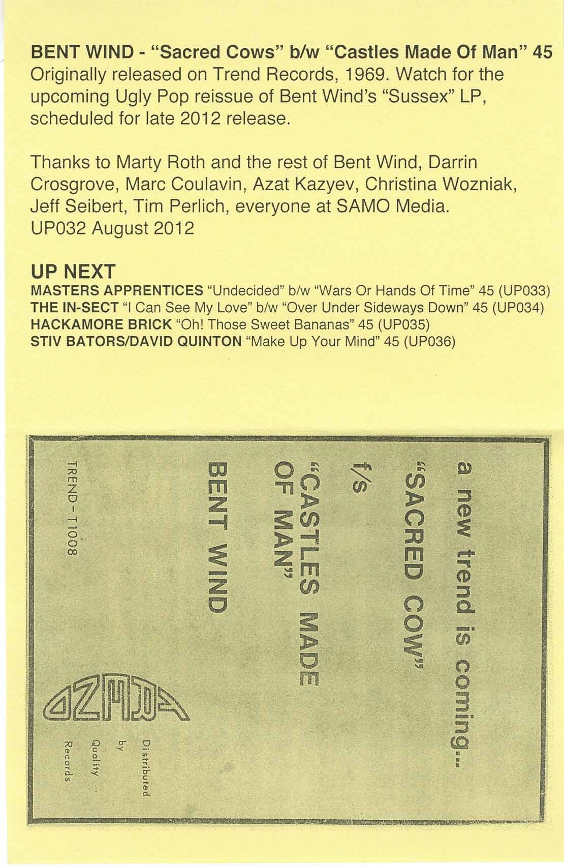 Bent Wind - Sacred Cows b/w Castles Made of Man (re-issue) (picture sleeve)