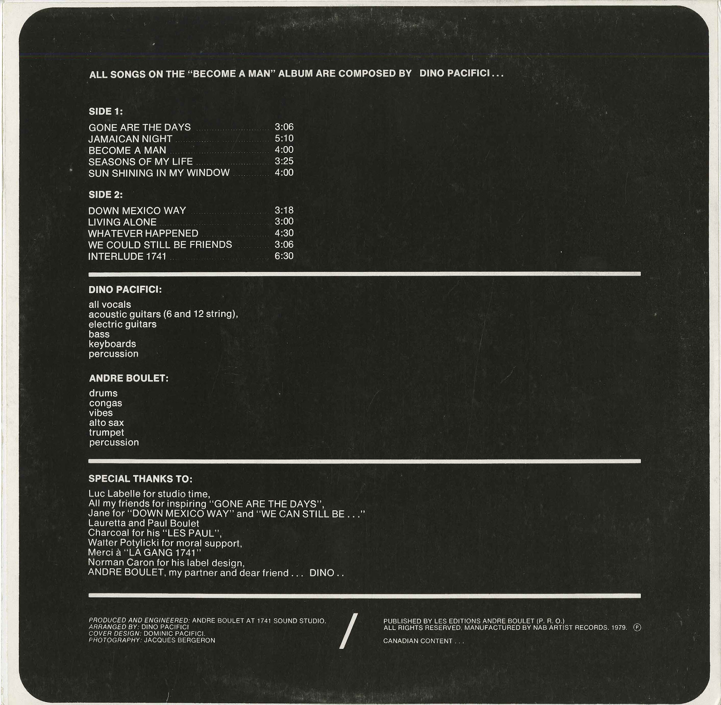 May 7, 2014: Dino Pacifici's first recording, 'Become a Man' has become a personal favourite album of mine. It was pressed in a quantity of 500 copies and has become hot in the collector market - for good reason. The album has also received a lot of airplay on this website. Thanks to Dee for allowing folks to stream the album on mocm.ca. "It was recorded and mixed in my friend's eight-track studio in a converted lawnmower shed. Glad you are enjoying it. I started writing the songs when I was 13 and finished the writing at 19. The album was then recorded. Great experience!"-Dino Pacifici