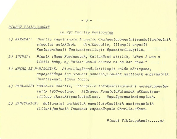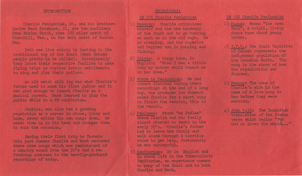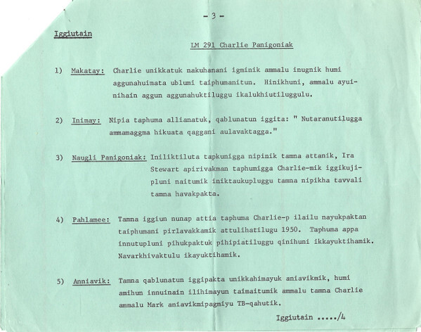 Panigoniak, Charlie - Eskimo Singer / Composer