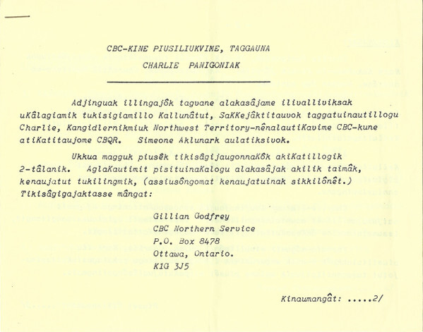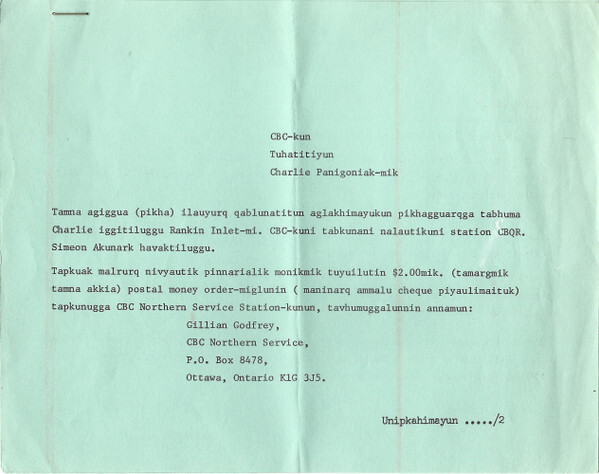CBC Northern Service and Related Recordings, Inuit northern songs, CBC Radio Canada LM Series, Nunavut, Indigenous Canada, 1970's