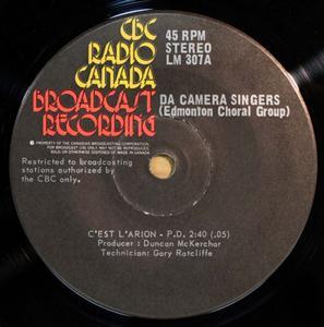 Da Camera Singers of Edmonton - C'est l'arion b/w A la claire la fontaine