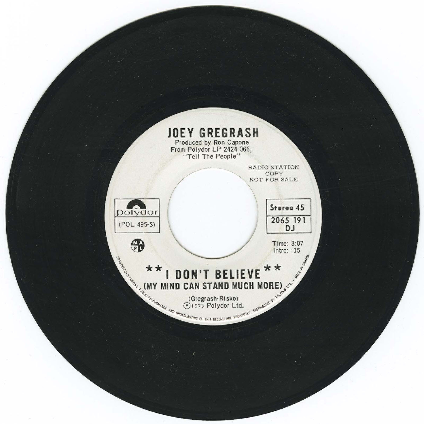 Gregorash, Joey - I Don't Believe (My Mind Can Stand Much More) (promo)