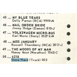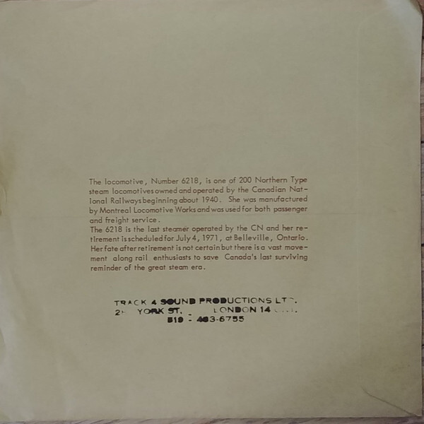 The locomotive, the last active steamer on CN, was a subject of interest to Assaf. His hotel, being directly across the street from the CN Tower in London, contained a number of oil paintings of famous Canadian steam locomotives, as well as a number of rail artifacts prominently displayed about the wall s o f the building. Mr. Assaf told Mulhern the story of the locomotive and suggested they collaborate on a song about the engine. A number of tunes and lyric ideas changed hands between the two over the next three months, and when the first draft of the song was completed, it was recorded at Track 4's studios, operated by Walter Crasser. Crasser subsequently became Mike' s manager and diehard promoter of the song. The initial recording of the song prompted the writers to initiate some changes in the structure of the song, and it was then completed in its present melodic form two weeks later. The song was again recorded at Track 4. Shortly after the take was completed, Mulhern teamed up with singer-guitarist Don Mathers to form what is now known as Stone Hand. Together they began performing and promoting the song "6218" along with Assaf and Crasser. Their promotion efforts have taken Stone Hand on the UCRS winter excursion of January 24, 1971, from Toronto to Orillia, where a film crew from the CBC television show "This Land" filmed the group and their song. The song and also "The Song of the Train " were broadcast on the "This Land" television show nationally on February 24, 1971 (and again on July 14). The song has also been performed on CFPL-TV in London, and article s on the song and the train have been published in newspapers throughout the country. The subject of the Stone Hand's song “6218” needs very little introduction to railfans. Although the recording may not help to keep the engine in operation, it is designed to preserve the memory of the locomotive, and in some way preserve the memory of steam. The flipside of the record is a beautiful treatment of the song that started it all "The Song of the Train".