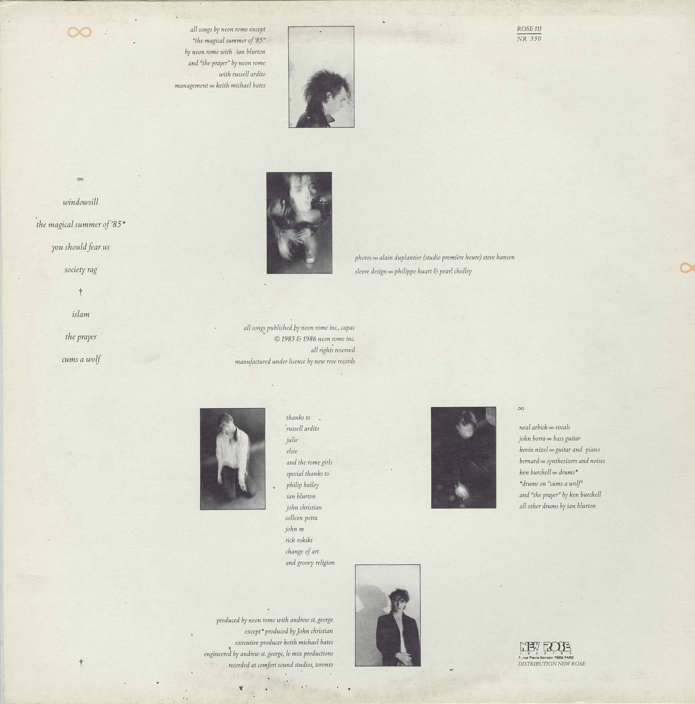 Out of the crutches of castles, the rags of civilization, came A Neon Rome. Formed in early 1984 they were born into a post punk, cold war world that was artistically void and ripe for the taking.