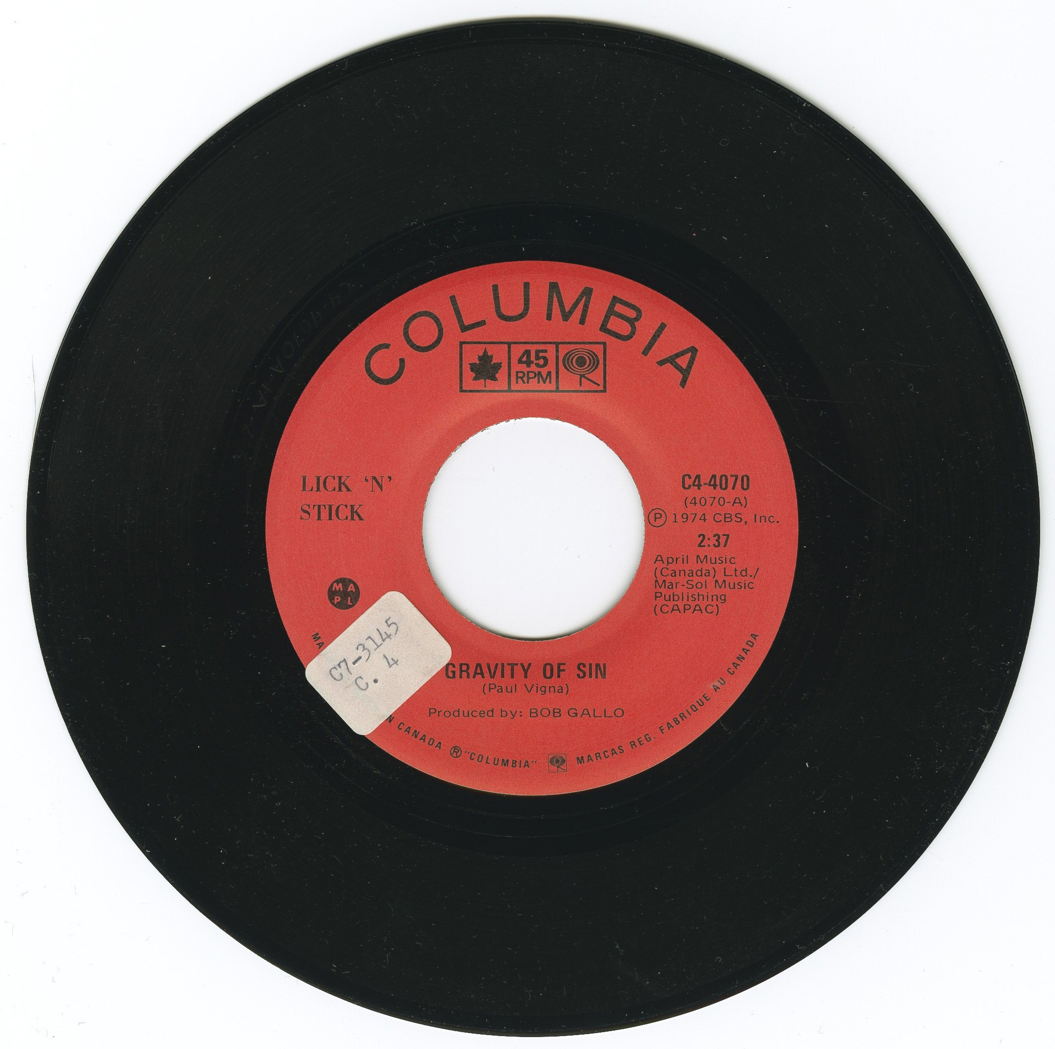 Lick 'N' Stick - Gravity of Sin b/w Take It Easy