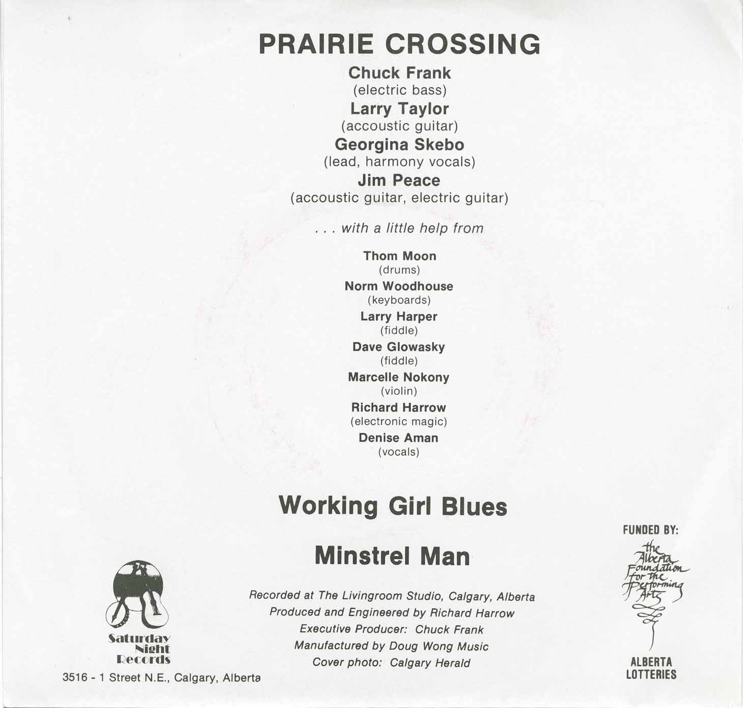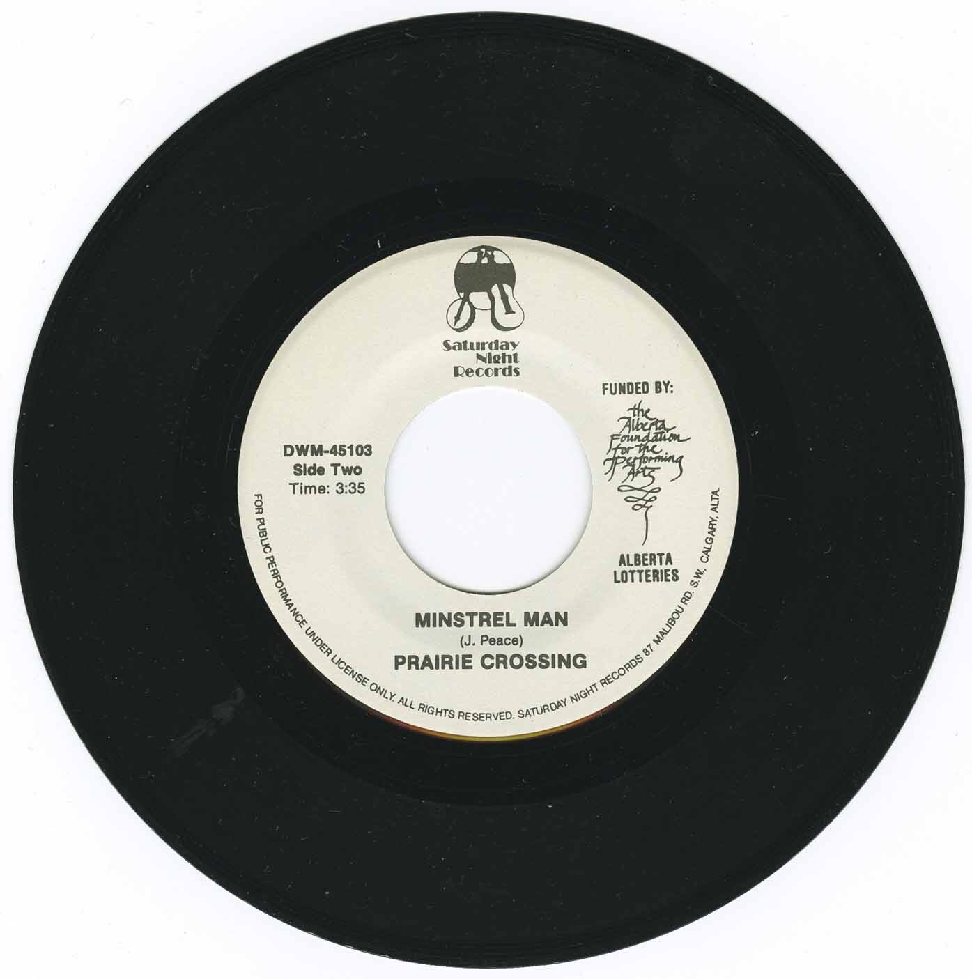 Prairie Crossing - Working Girl Blues b/w Minstrel Man