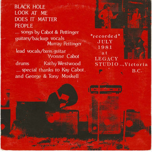 "Black Hole" is a fast-tempo melodic punk/mod rocker with velvet-smooth lead vocals from Yvonne Cabot, good backing vocals from Murry Pettinger and nice guitar work including a good solo, percolating bass, and good time-keeping from kathy Westwood.