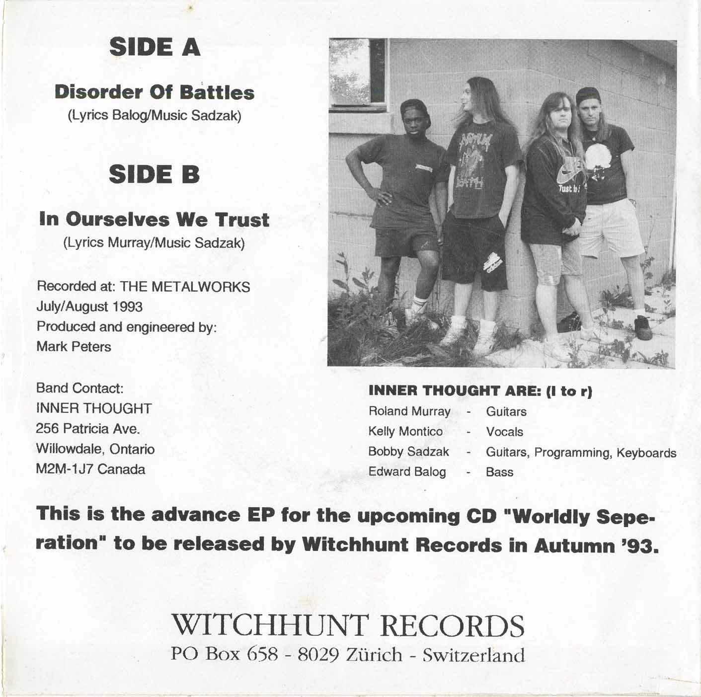 Inner Thought - Disorder of Battles b/w In Ourselves We Trust (picture sleeve)