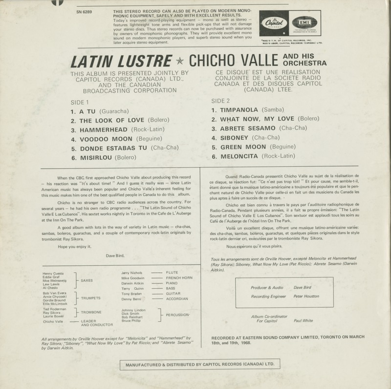 Arangements: Chicho Valle, Darwin Aitkin, Pat Riccio and Ray Sikora