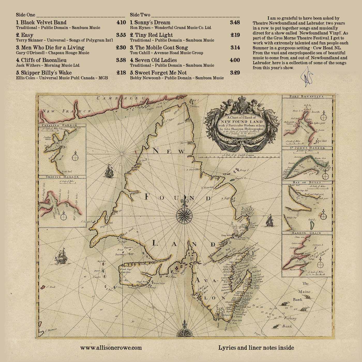 "I am so grateful to have been asked by Theatre Newfoundland and Labrador, two years in a row, to put together songs and musically direct for a show called 'Newfoundland Vinyl'. As part of the Gros Morne Theatre Festival, I get to work with extremely talented and fun people each Summer in a gorgeous setting - Cow Head, NL. From the vast and encyclopaedic sea of beautiful music to come from, and out of, Newfoundland and Labrador, here is a collection of some of the songs from this year's show," notes Allison Crowe.