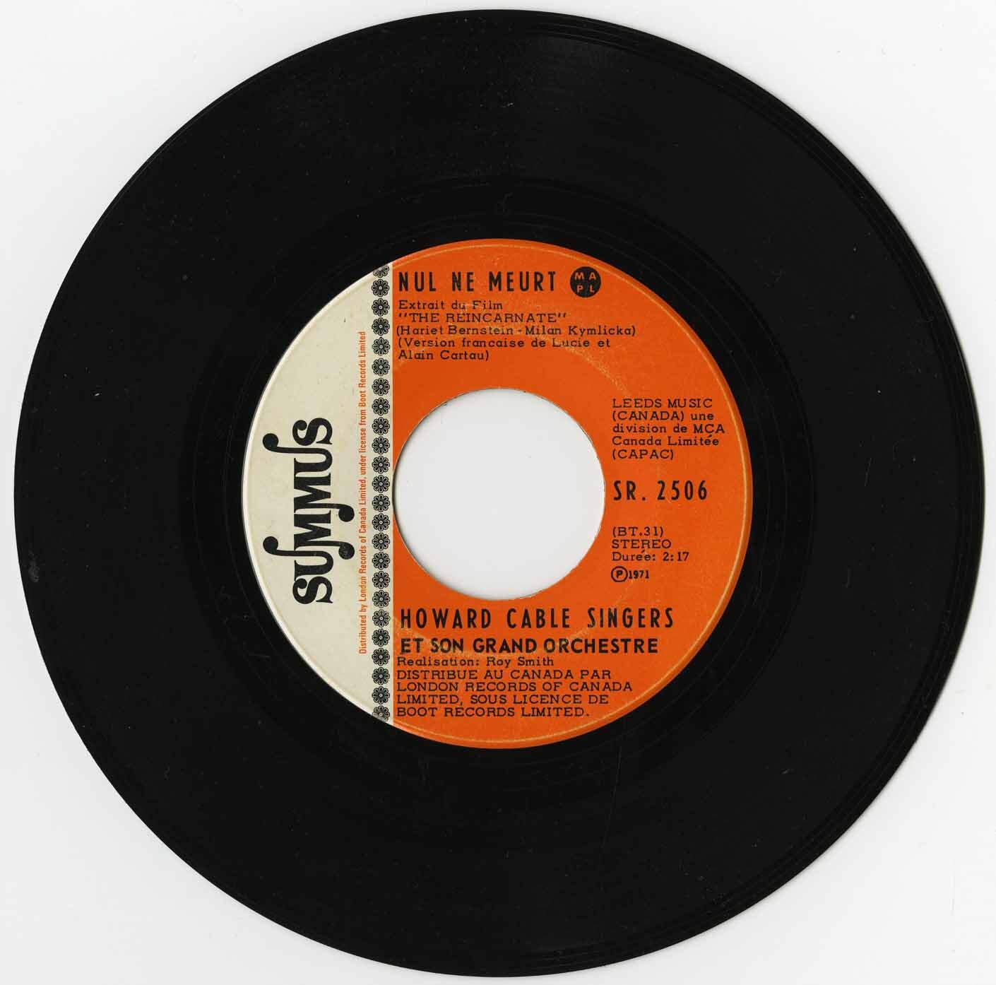 Cable, Howard Orchestra - Theme du Film "The Reincarnate" b/w Nul ne meurt