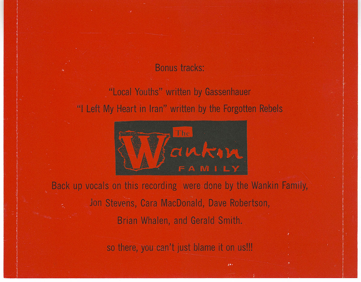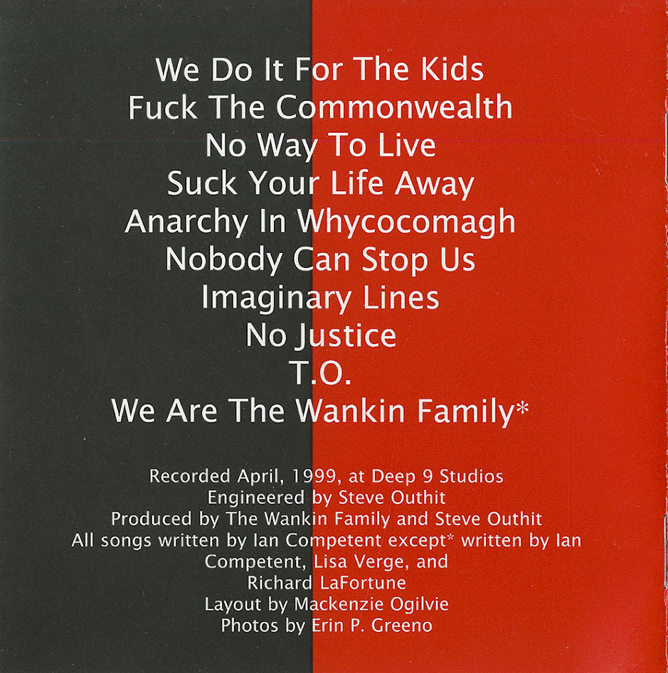As the name of the CD implies, The Wankin Family are now part of the past tense. In fact, we had been broken up for over a year but reformed to release this thing because the only recorded legacy we had was an awful demo. So while I will remember this band as a royal pain in the ass, I guess I’m happy that songs will get to survive. I’d like to thank Richard on behalf of all the band members for paying for this thing. Without him, this never could have happened.