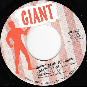 Red Leaf Records issued the first two Magic Cycle singles in 1967, “Let’s Run Away” backed with “Halfway to Heaven,” and “Give Me the Right” backed with “It Was You.” Tuneful and radio-ready, they kept the band visible beyond the GTA. A change in personnel followed: Santalucia departed, while keyboardist Pete Young and guitarist-singer Ken Johnstone came aboard. Late that year the group toughened its sound on Ben McPeek’s GIANT label with the psych-tinted “Doctor Lollipop” backed with “Where Were You When I Needed You,” tracked at Art Snider’s new Sound Canada Studios and giving Paul his first released writer/producer credit.