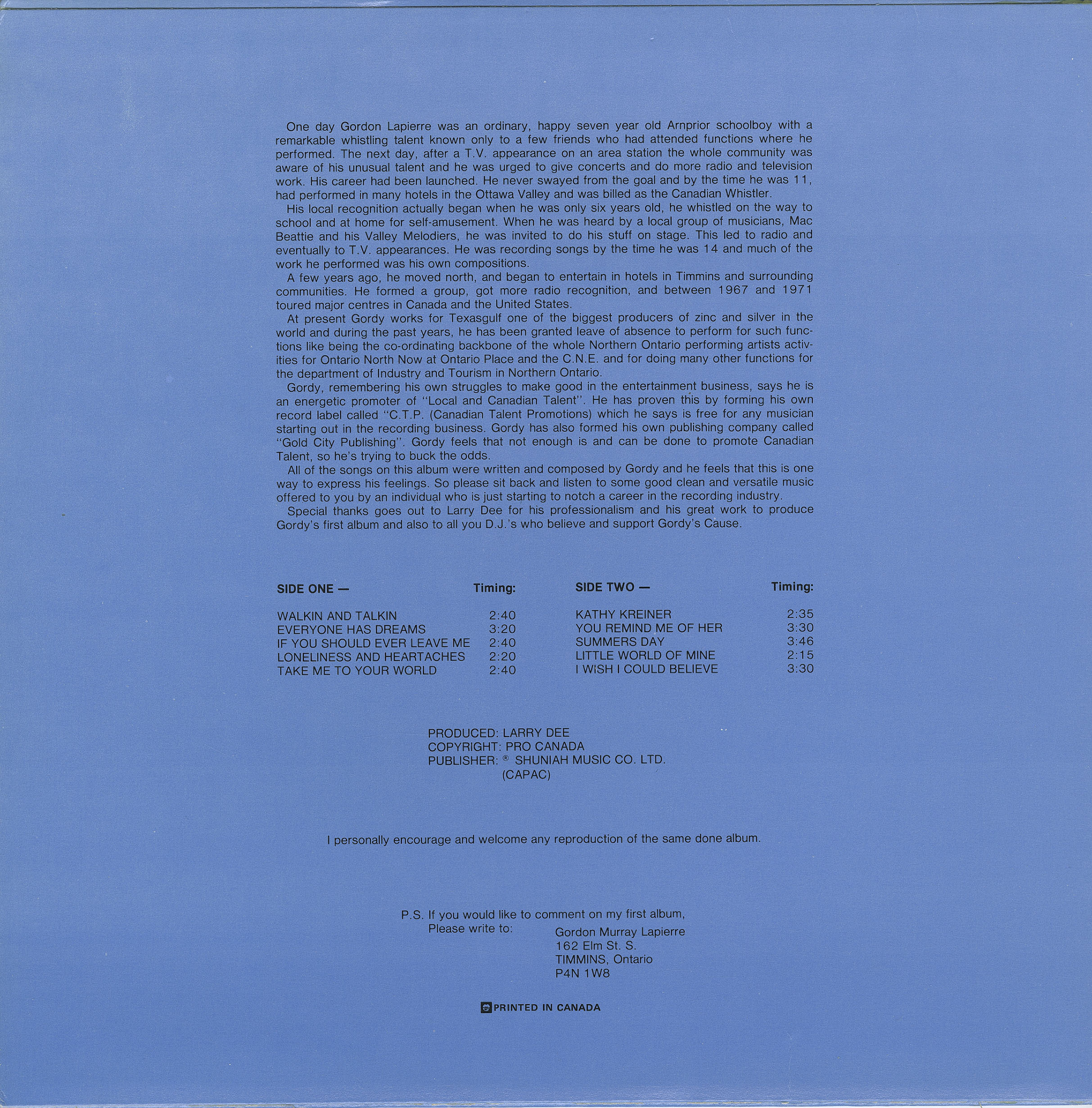 Label: Canadian Talent Promotions CTP 100