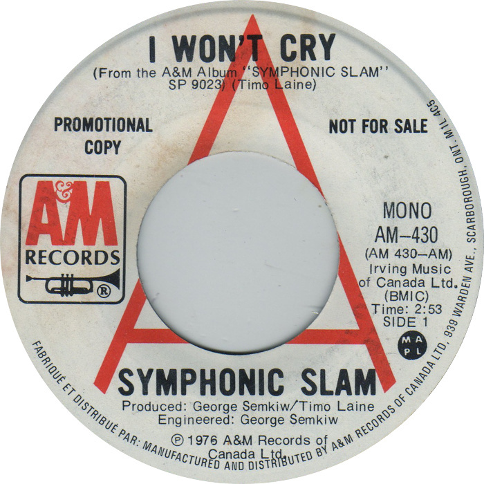 Symphonic Slam - I Won't Cry b/w I Won't Cry (promo)