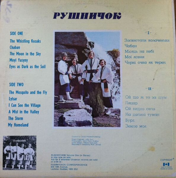 In their time together, Rushnychok recorded five albums comprised of 63 songs. The albums were all issued under the band's own SAGE Promotions record label (SAGE came from combining their names' first initials). The band's album sales could be counted in the tens of thousands - a rare feat compared to other North American "ethnic" acts. Amazingly, the albums also had a large impact in Ukraine where copies had to be secrectly snuck in.