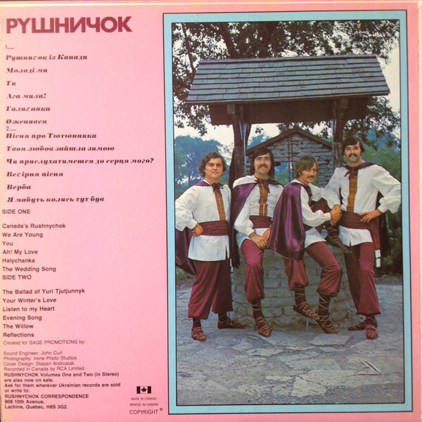 In their time together, Rushnychok recorded five albums comprised of 63 songs. The albums were all issued under the band's own SAGE Promotions record label (SAGE came from combining their names' first initials). The band's album sales could be counted in the tens of thousands - a rare feat compared to other North American "ethnic" acts. Amazingly, the albums also had a large impact in Ukraine where copies had to be secrectly snuck in.