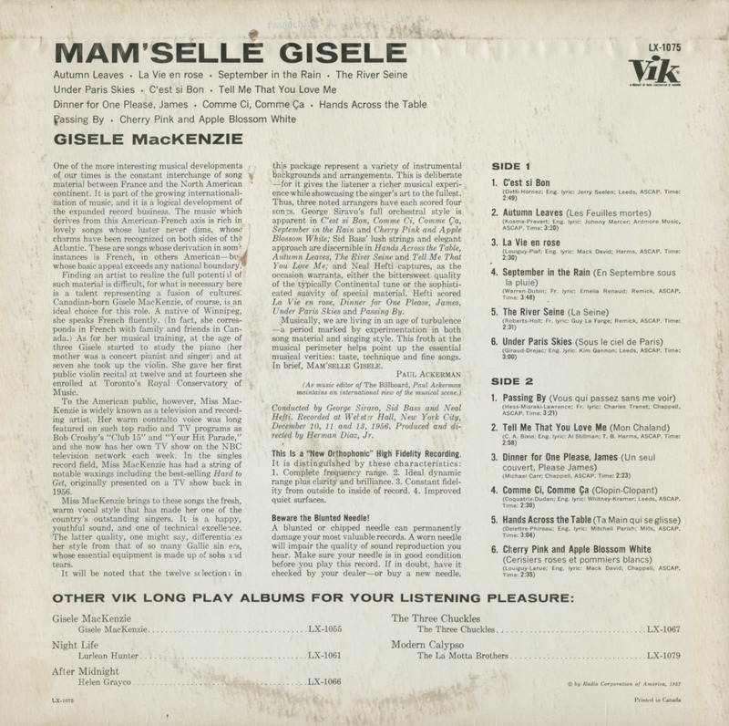 Mackenzie, Gisèle - Mam'selle Gisele
