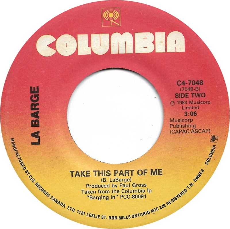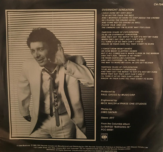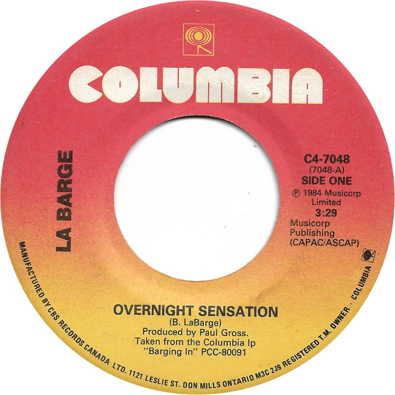 LaBarge, Bernie - Overnight Sensation b/w Take This Part of Me (picture sleeve)