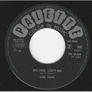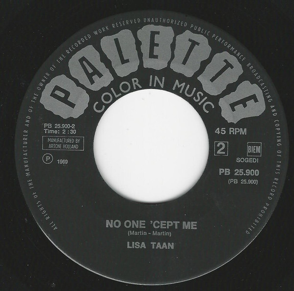 A new name - young, exciting and very talented Lisa Taan does Simon Simon. Top 40 geared, we're sure this will move to a spot on the charts. This girl has everything going for her - good song - exciting arrangements and plenty of talent. The flip is 'No-one 'cep' Me - a swinger.
