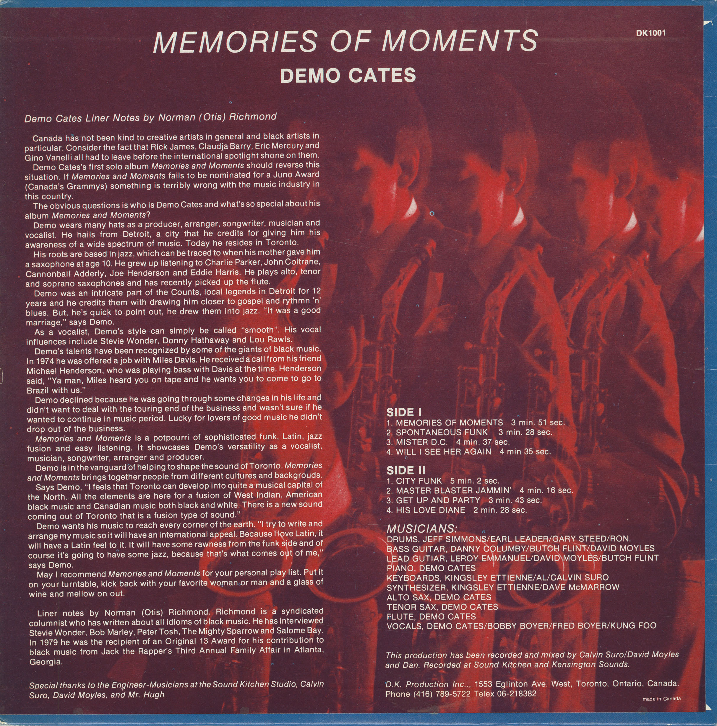 The obvious question is: who is Demo Cates and what’s so special about his album Memories and Moments?