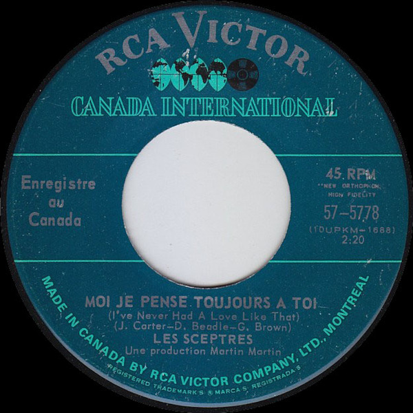 Sceptres, The - Moi je pense toujours a toi b/w (I've Never Had a Love Like That) b/w Rien qu'un larme (One Lonely Tear)
