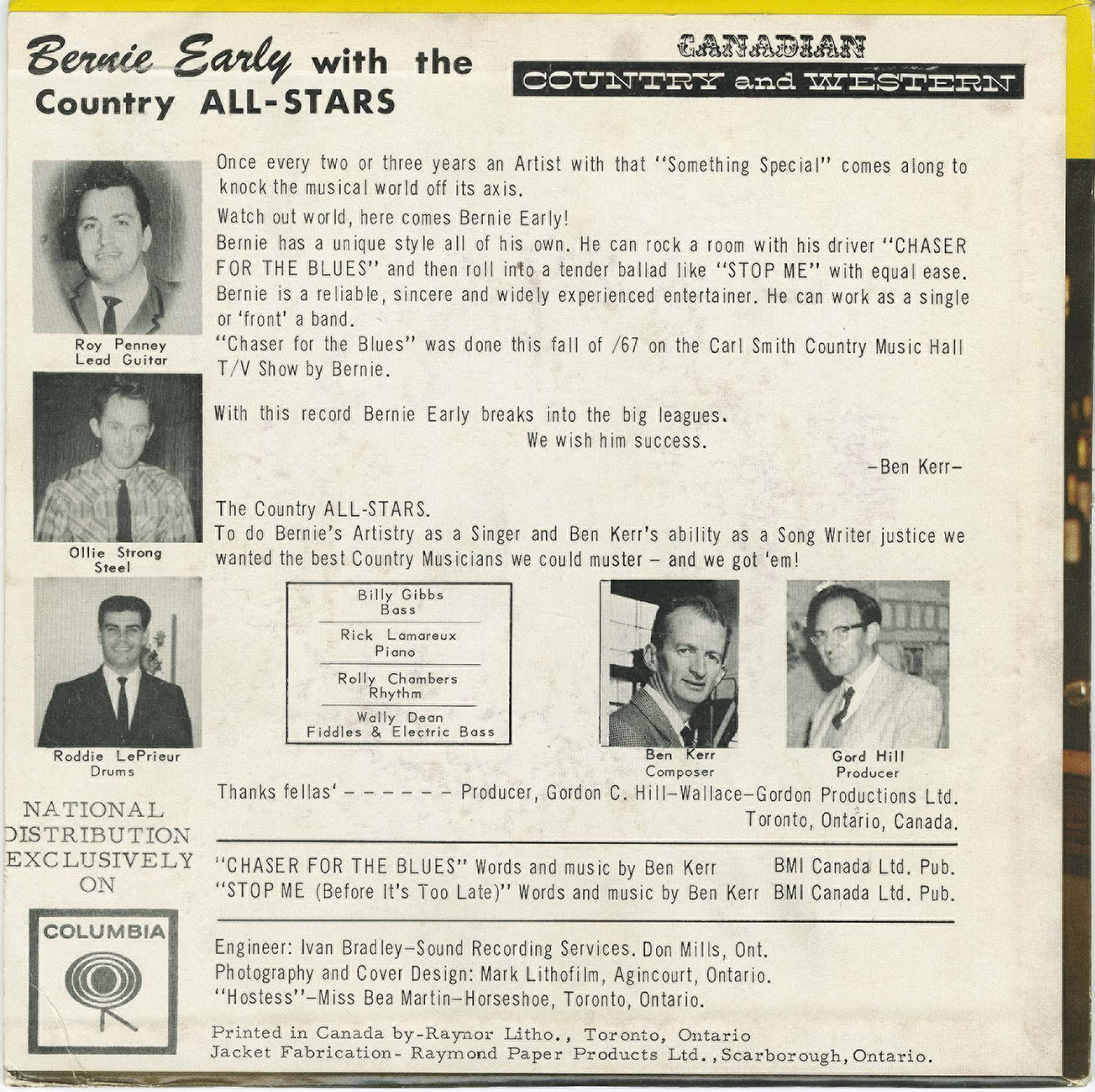 Early, Bernie - Chaser for the Blues b/w Stop Me (Before It's Too Late) (picture sleeve)
