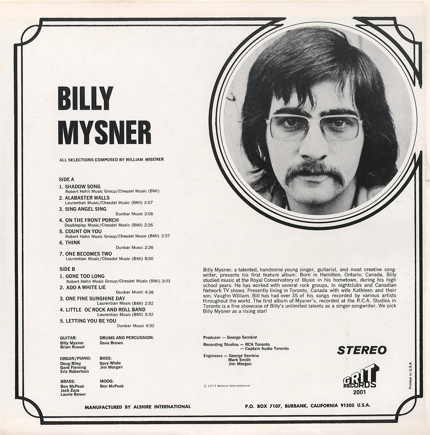 Throughout the early 1970s, Misener became a quiet force within RCA Canada’s in-house Sunbar Productions team, working at RCA’s Mutual Street studios in Toronto. There, he collaborated with prominent engineers like George Semkiw and Mark Smith, producing and arranging for a range of Canadian artists including Keith Hampshire, Morse Code Transmission, and cult psych-rock band It’s All Meat.