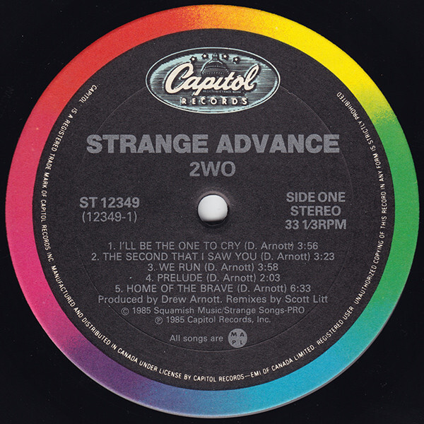 2WO is the second studio album by Canadian new wave band Strange Advance released in February, 1985. It featured two hit Canadian singles, "We Run" and "The Second That I Saw You". Along with their first album, this was a Canadian gold record for the band.