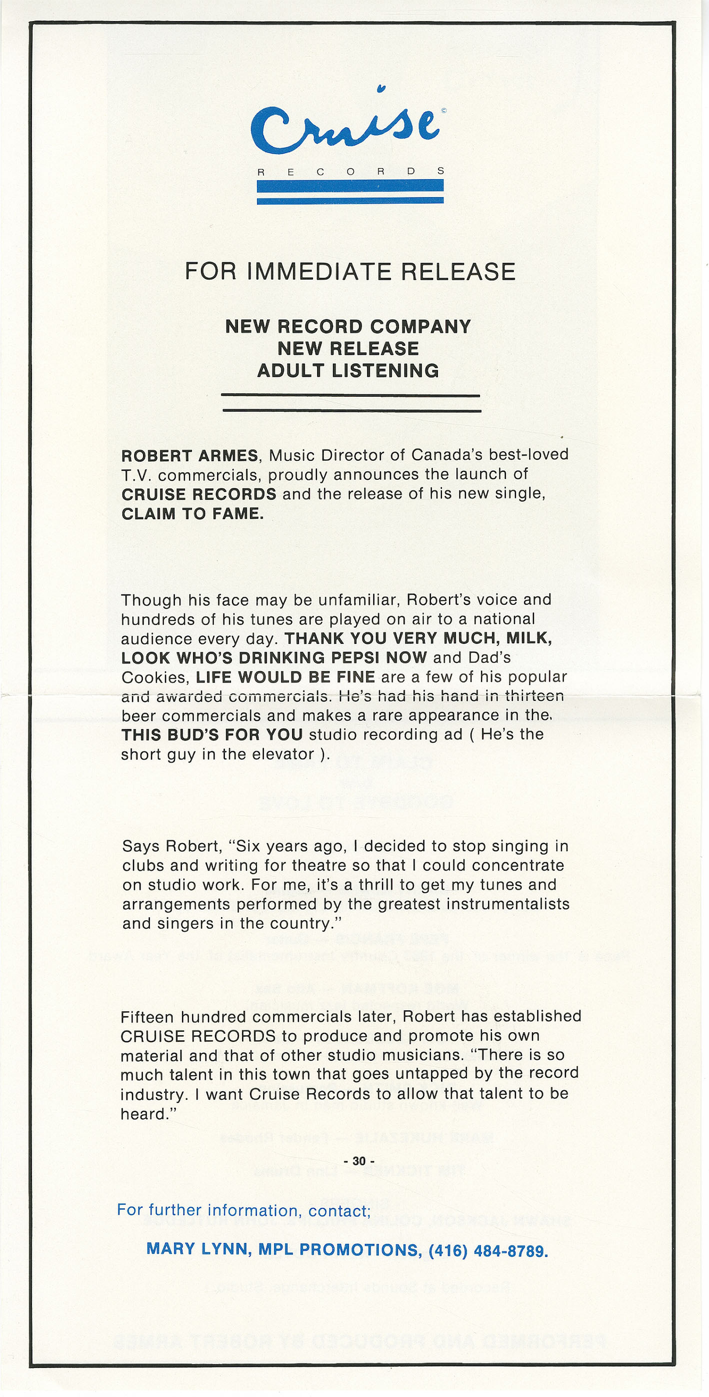 Label: Cruise Records CRS-001