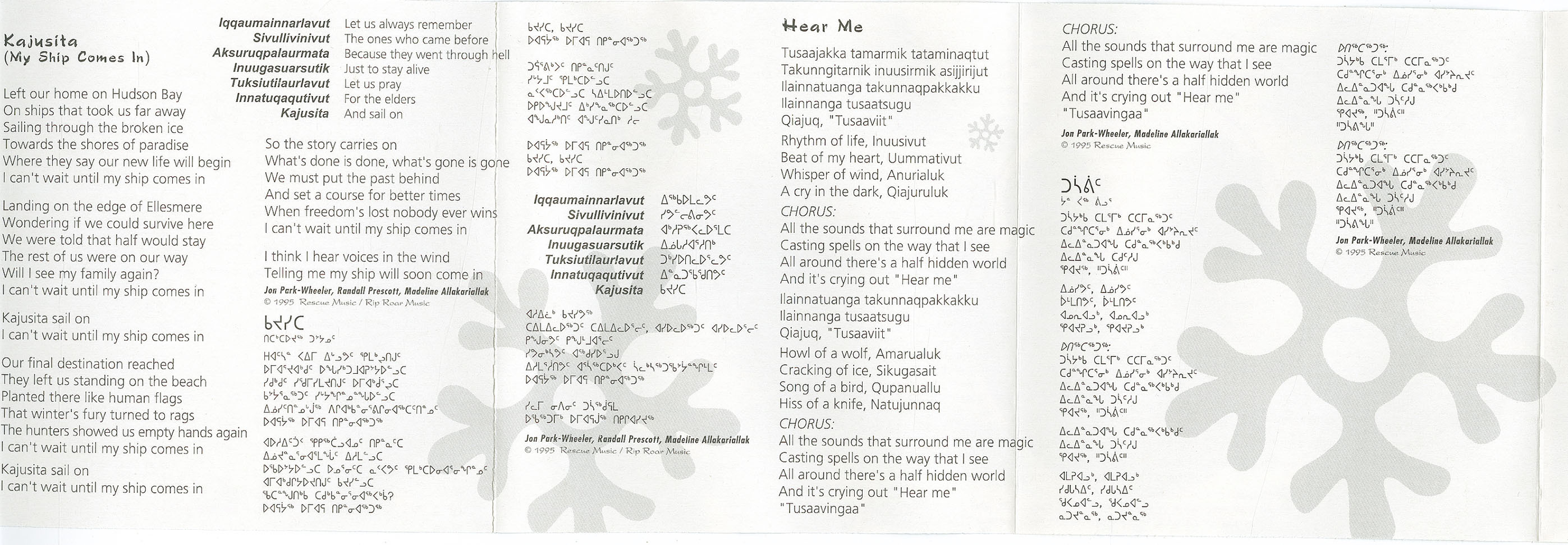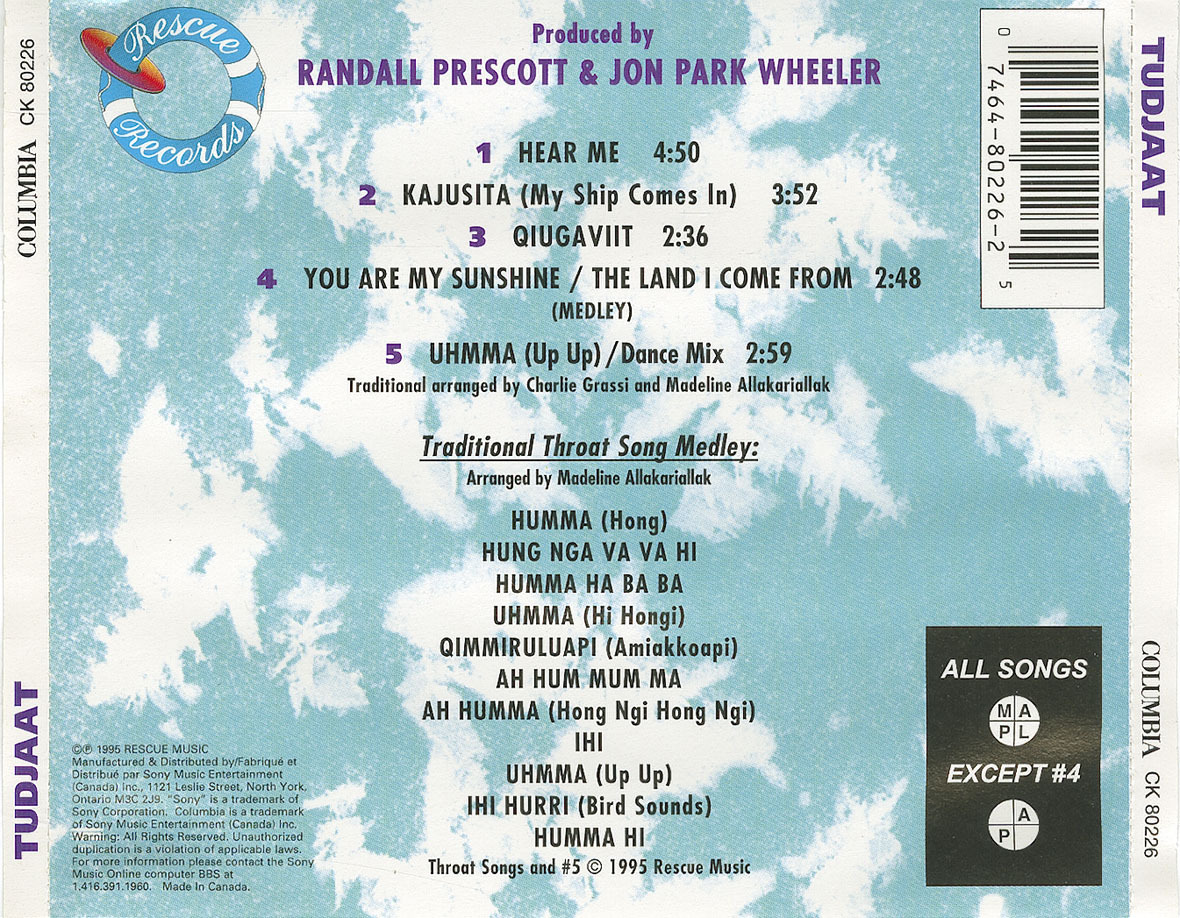 Written by Madeline Allakariallak (tracks 1, 2, 3,4,6); and Charlie Grassi (track 5)