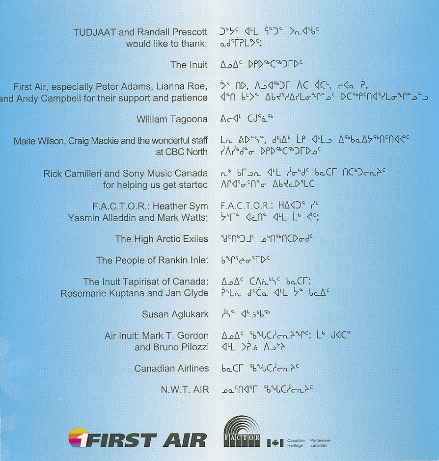 Listen to the recent CD release of Tudjaat and you can hear that the story of the Tudjaat spans time and space, from Resolute Bay to Germany, from the ancient art of throat singing to modern rhythms.