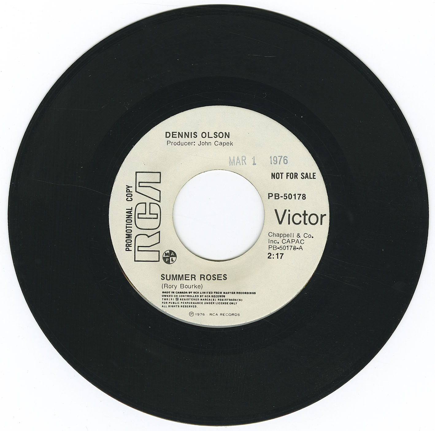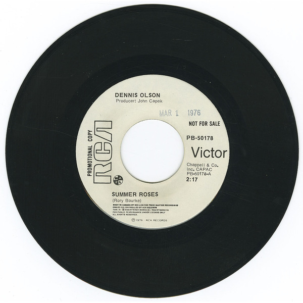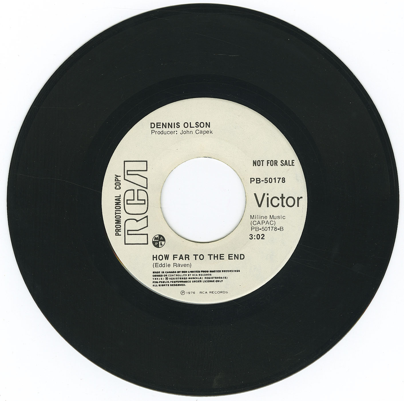 There was little in the way of follow-up material from Dennis T. Olson. He is featured with one song, "Don't It Make You Want To Go Home", on the 1980 vinyl LP "Reunion" (Sunshine Records-SSLP-4020), a 40th Anniversary tribute to the Riverton, Manitoba music scene where Olson launched his music career. His participation in the project led to his composition "Tribute To The Musical Mates", referring to the group "Johnny & His Musical Mates", an early act on the Riverton music scene.