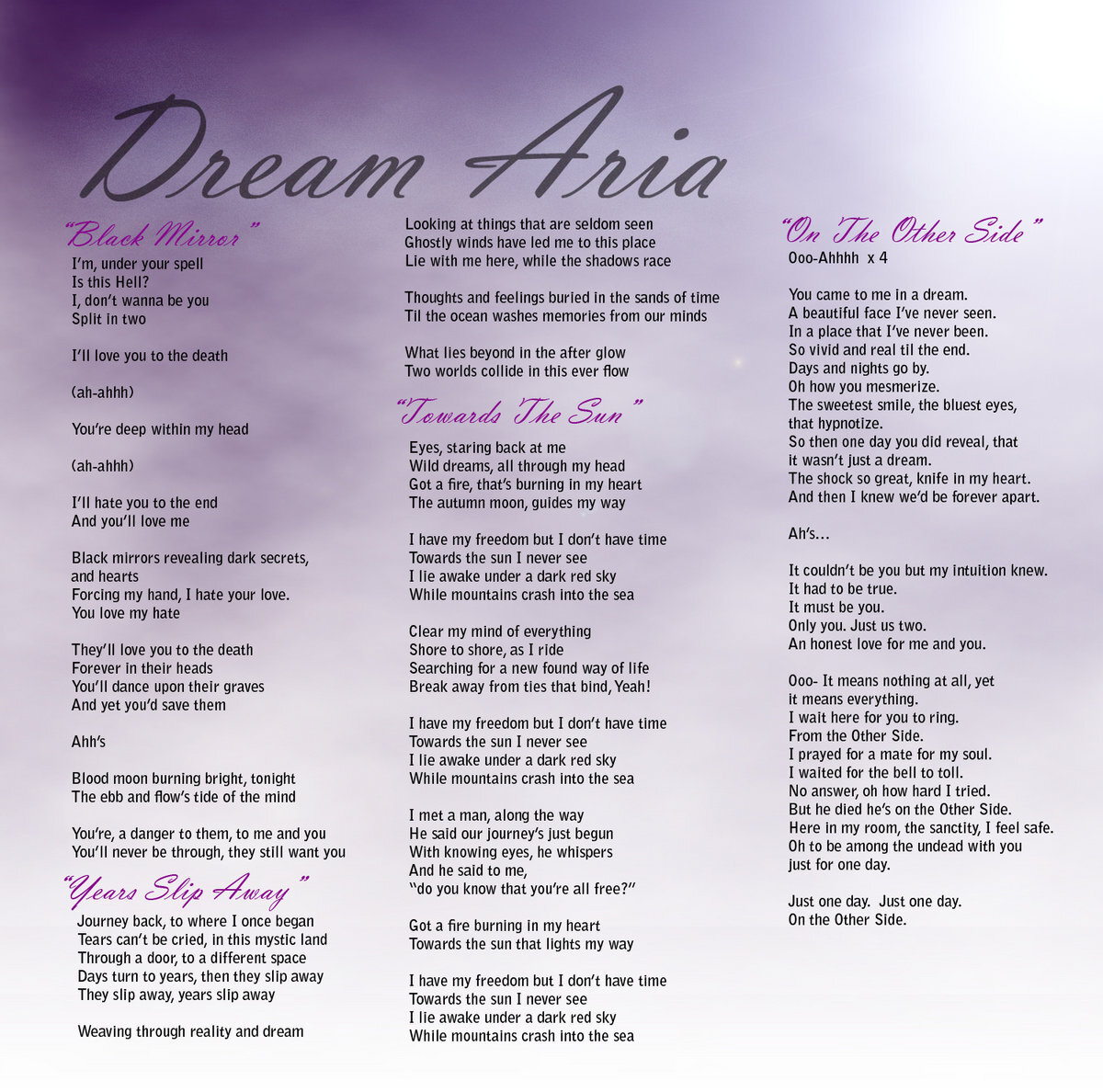 The musical journey that Dream Aria takes the listener on is just phenomenal, for it's a journey that will toy with every emotion that the listener possesses!" …