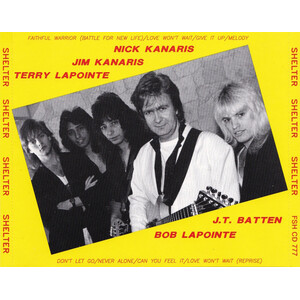 The band began as Shelter, releasing their self-titled debut album in 1991. This 8-song CD quickly became a favorite in the AOR underground scene, praised for its melodic sensibilities and timeless appeal. That same summer, their track "Don’t Let Go" reached the #1 spot on the Top 10 at 10 countdown on CHOM 97.7 FM in Montreal, solidifying the band's presence on the Canadian airwaves and marking a significant milestone in their early career.