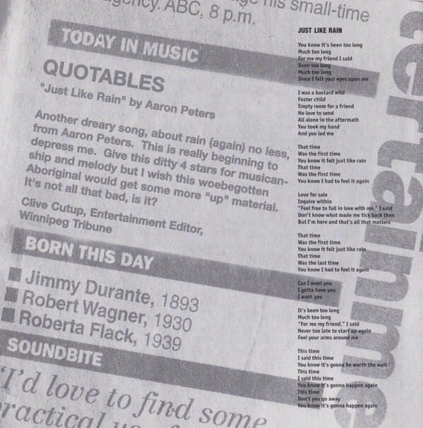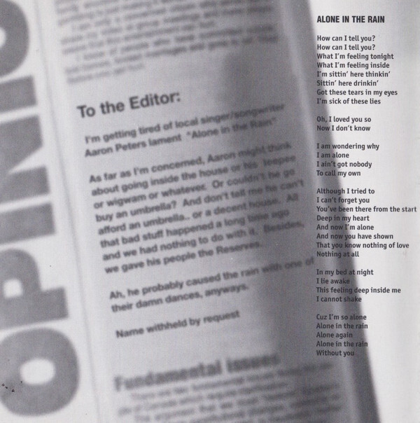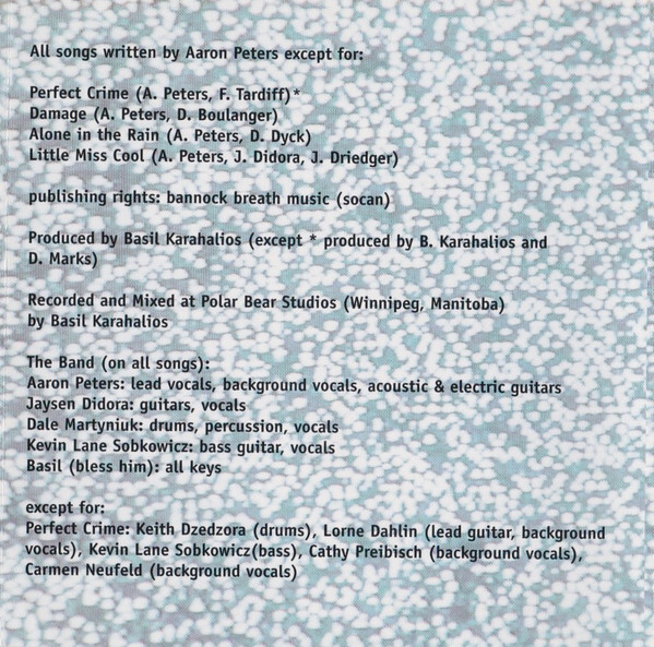 Aaron Peters: lead vocals, acoustic & electric guitars, backing vocals