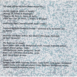 Recorded and mixed at Polar Bear Studios (Winnipeg, Manitoba) by Basil Karahalios