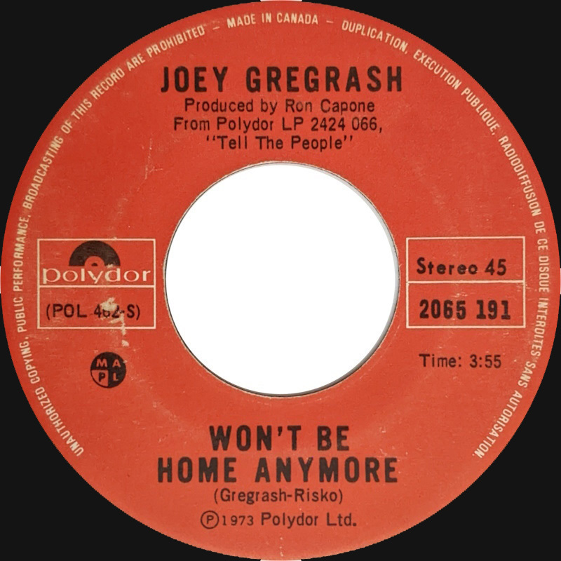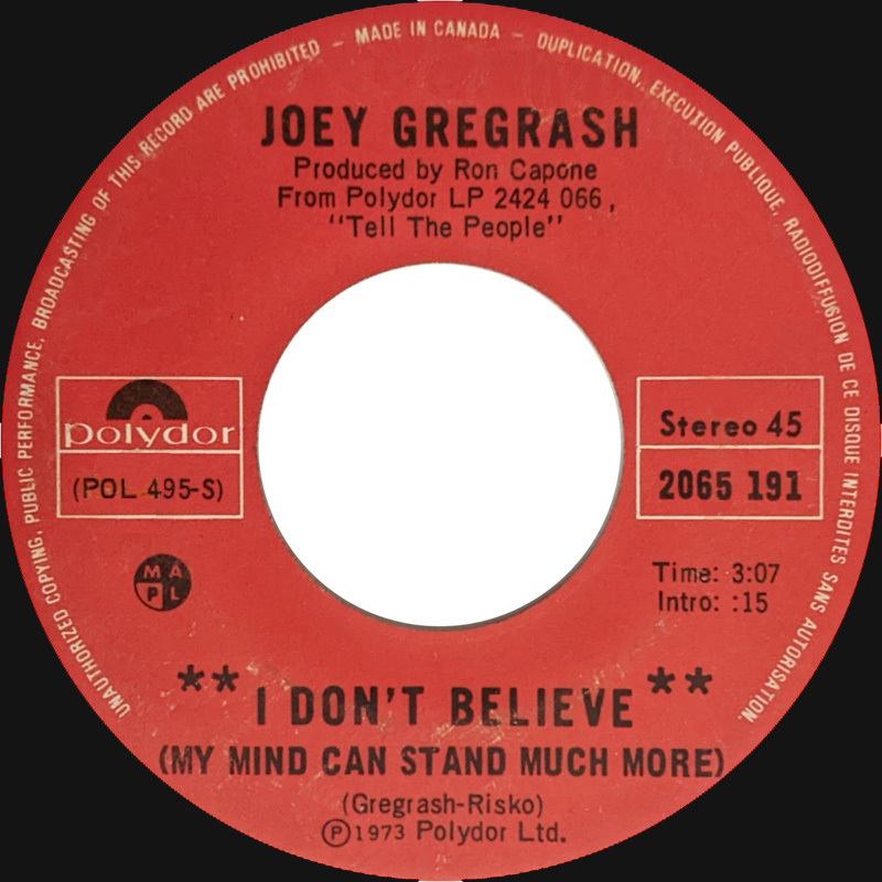 Gregorash, Joey - I Don't Believe (My Mind Can Stand Much More) b/w Won't Be Home Anymore
