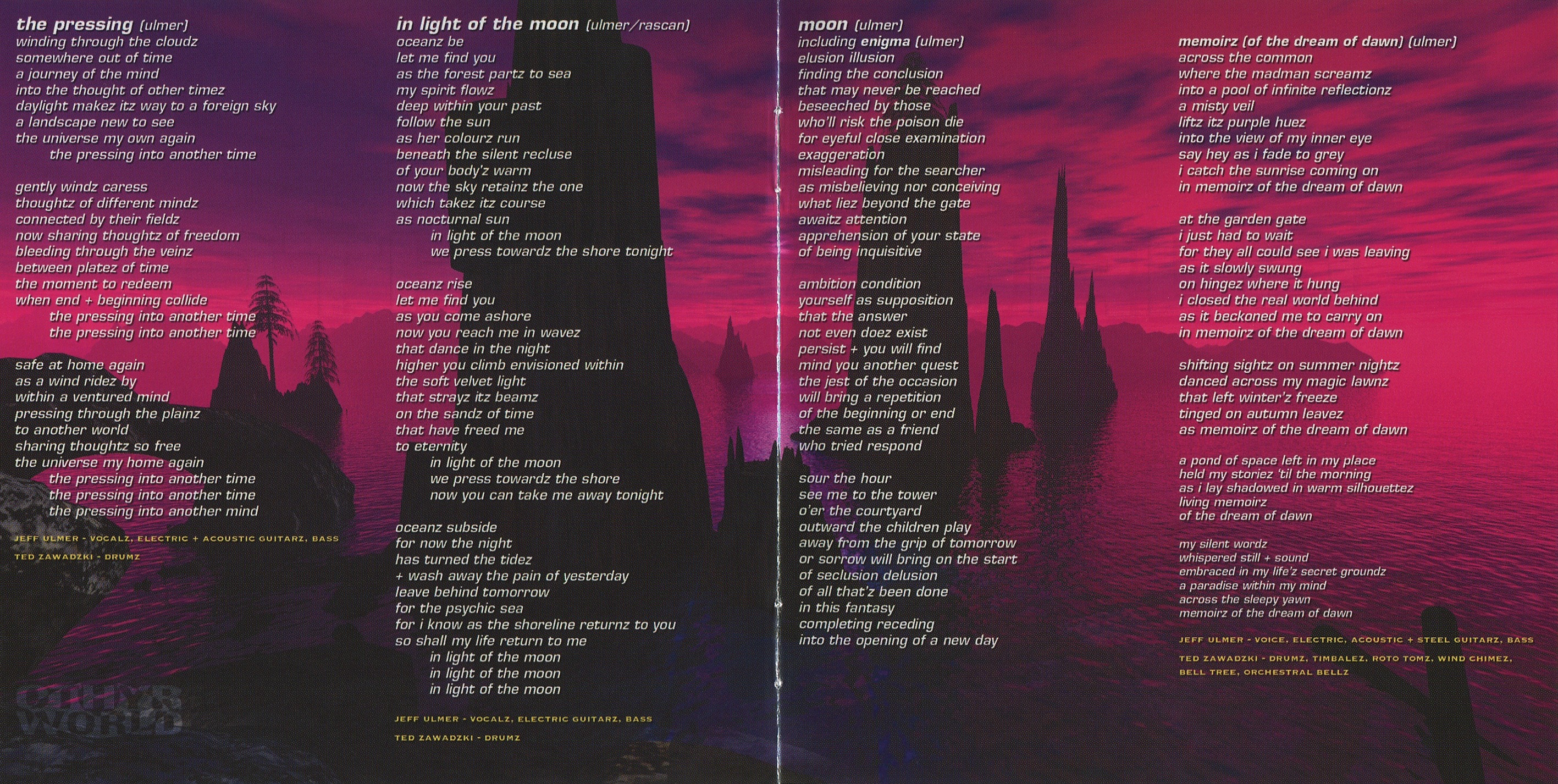 Jeff Ulmer: electric guitar, 12-string acoustic guitar, Ebow, bass, synthesizer