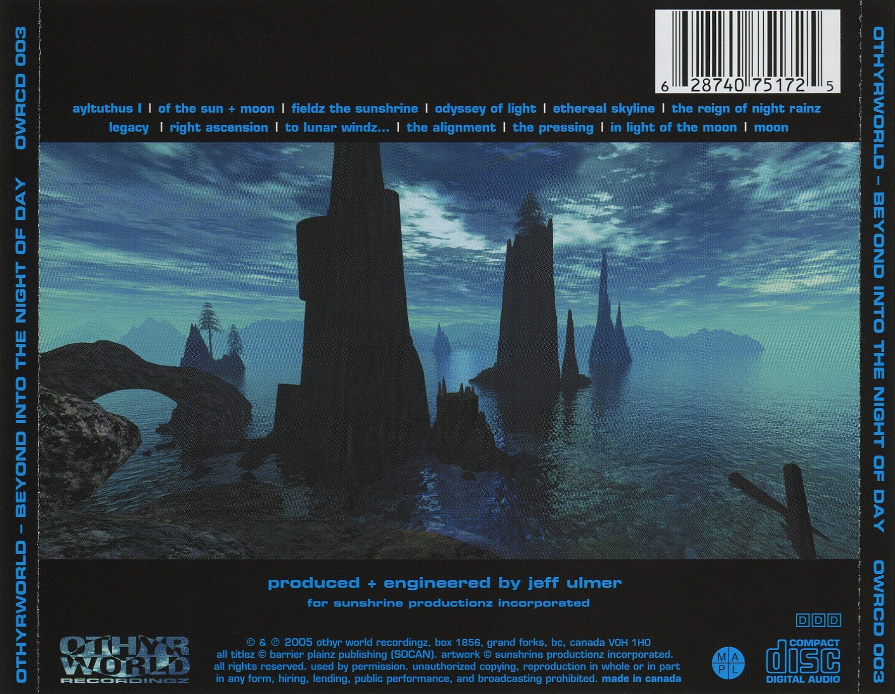 Recorded, mixed + mastered at Studio of Dreamz, Britiah Columbia, July 1994 - January 2005