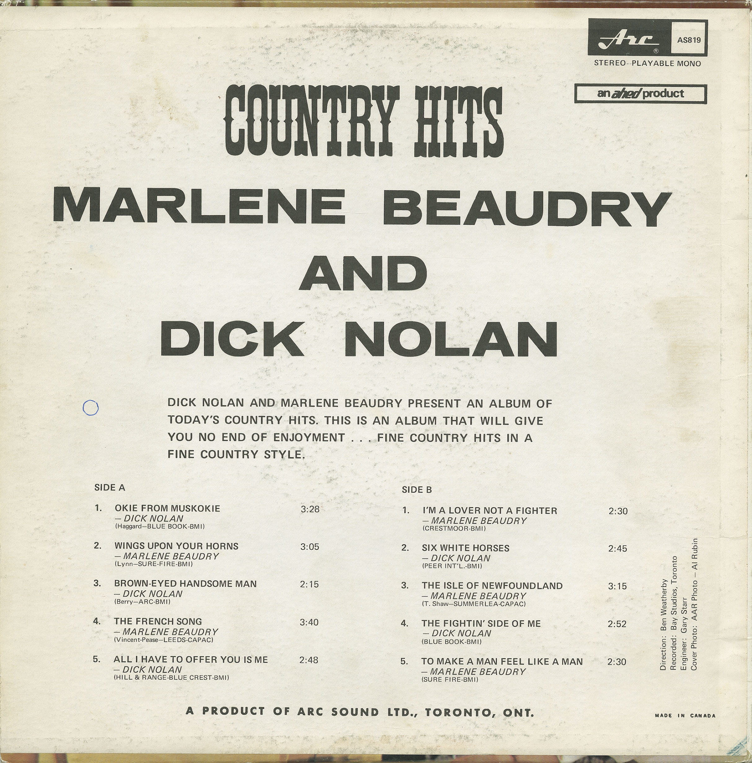 Country & Western, Newfoundland Labrador, 1960's, Arc Records