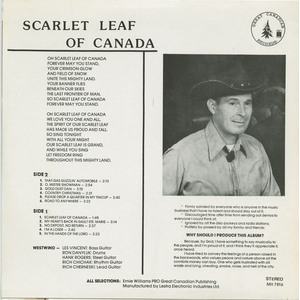He assembled Westwind, a band that consisted of Les Vincent on bass, drummer Ron Danyluk, and the guitar trio of Hank Rogers on steel, Rich Chichak on rhythm, and Rich Cherneski on lead, and recorded some raw demos that were shopped around to labels around western Canada. But the labels’ big fish weren’t biting, so the band travelled to the big city (Edmonton) and recorded some tracks at Lestra Electronic Industries. The result was his only album, SCARLET LEAF OF CANADA, issued by his own label, Great Canadian Records, in the early ’80s.